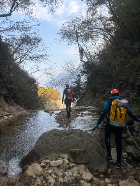 Parcheggiata la macchina lungo lago, saliremo per circa 20 minuti nel bosco fino alla partenza del canyon, qui dopo la vestizione ed un breef sulla movimentazione, inizieremo la nostra discesa.